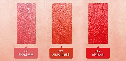 #01永生花擦起來是水潤粉紅色、#02復古薔薇偏橘紅色、#03血玫瑰則是可樂紅。