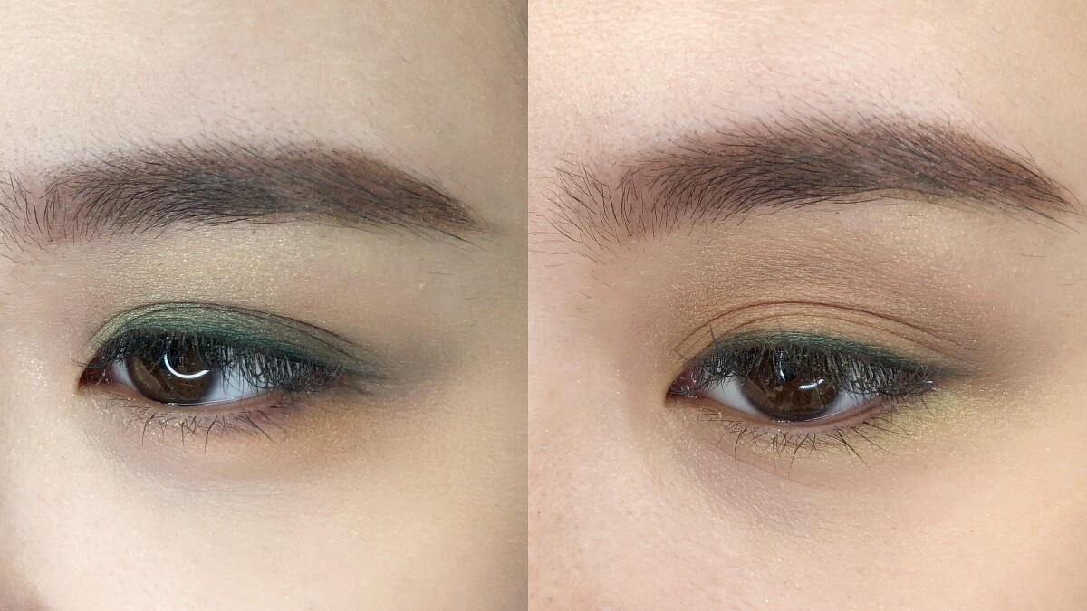 ↑以綠色或咖啡色為主,可畫出不同妝感的眼妝