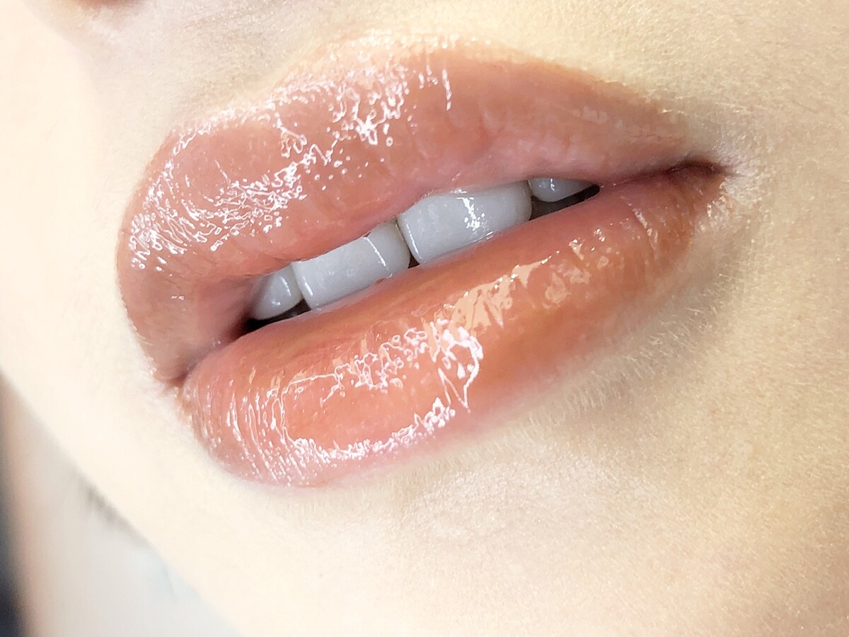 ↑奢華緞面鏡光唇釉的新色#55裸色幻影實際擦在唇上,沒有在手上那麼裸,反而帶點裸橘色,非常好看。