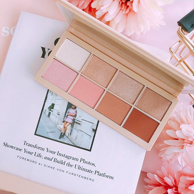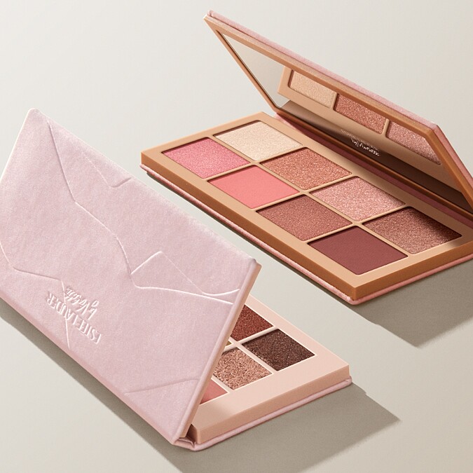 以實用裸色調為主,加入近期最夯的粉色與橘棕色,並融合金屬光、珍珠光與霧面三種質地,一盤結合腮紅、打亮、眼影等多功能用法,利用深淺裸色系打造立體五官輪廓與自然好氣色。