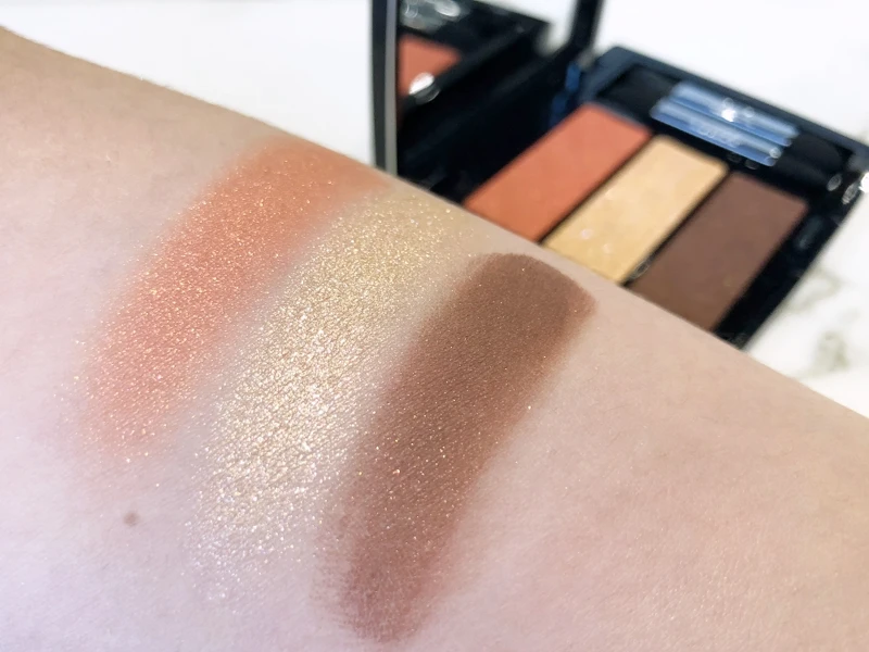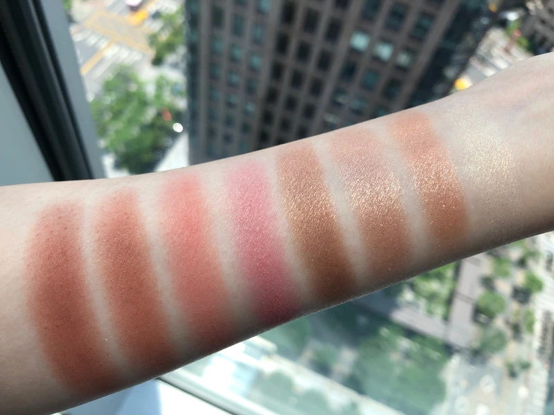 以實用裸色調為主,加入近期最夯的粉色與橘棕色,並融合金屬光、珍珠光與霧面三種質地,一盤結合腮紅、打亮、眼影等多功能用法,利用深淺裸色系打造立體五官輪廓與自然好氣色。