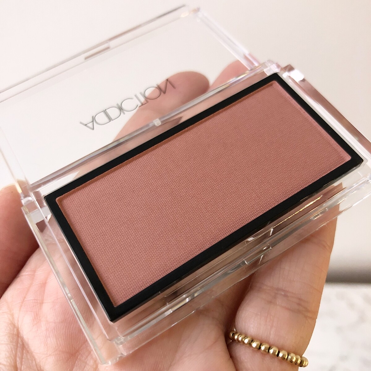 出現在ADDICTION 2019年夏妝的單色頰彩,#033的暖棕玫瑰色,乍看雖深,擦在臉上卻很健康。