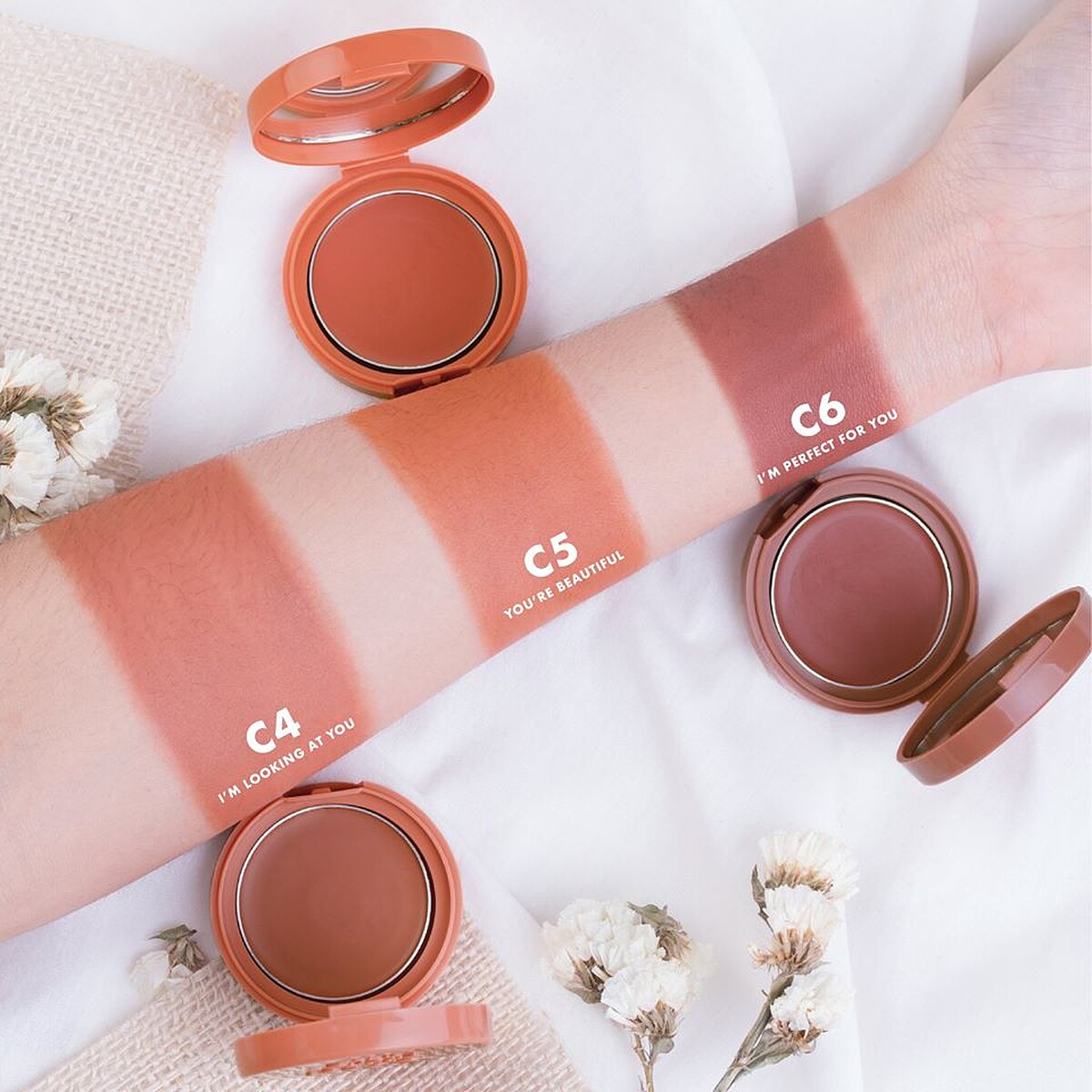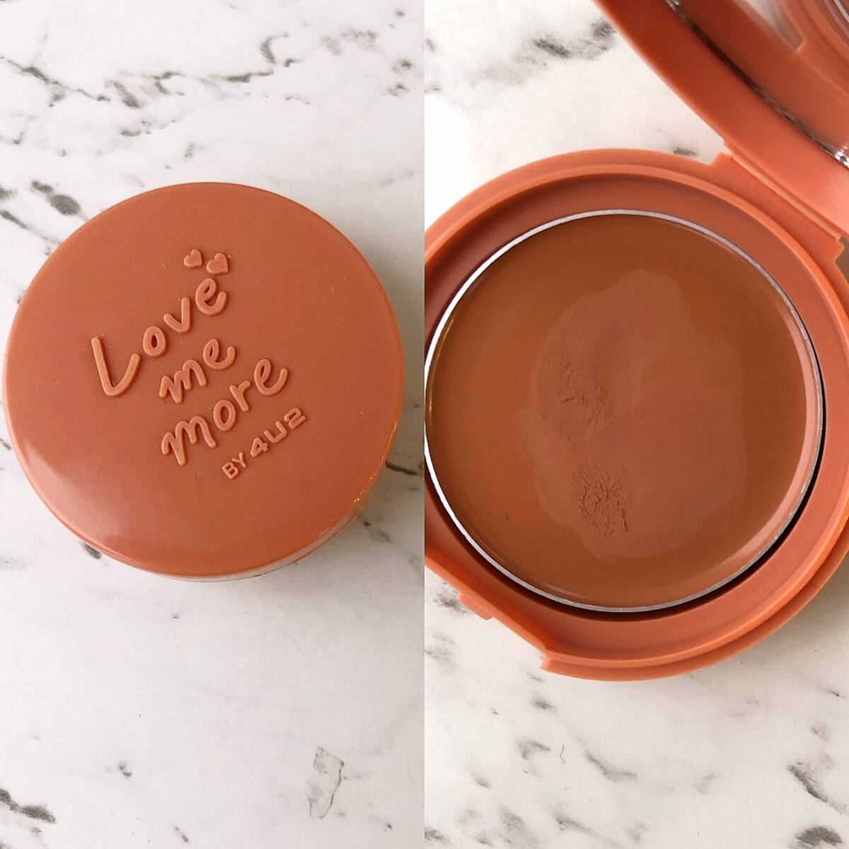 4U2 LOVE ME MORE CREAM羞飾腮紅的霜狀質地柔滑,塗抹起來如慕斯般輕盈,而且極為貼膚,同時也加強抗汗力,夏天用也不怕脫妝。#C4的暖茶色,溫柔中帶著清新感,對黃皮女孩來說很友善。