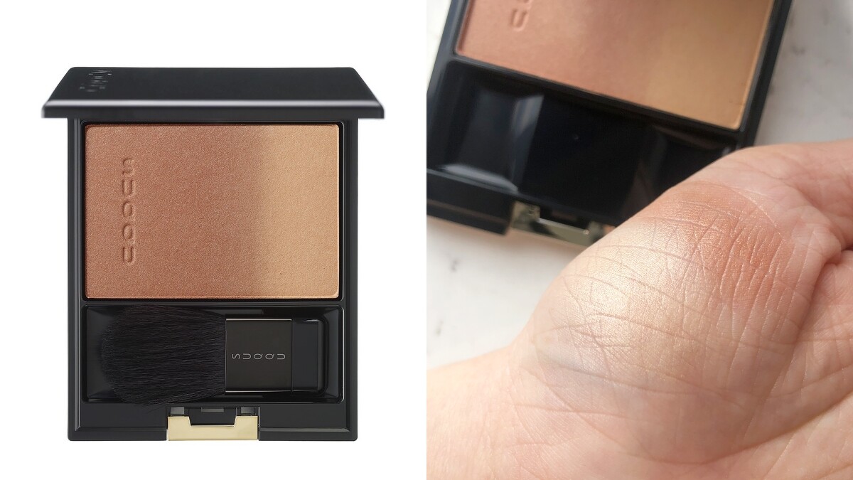 有「腮紅王」稱呼的SUQQU,2020年6月在台灣推出初夏限定「大人系野生之美 Wildflower Bouquet」,讓英國與伊勢丹限定色同步在台灣買得到。當中就出現一塊絕美奶茶土色腮紅- #121夕影YUUKAGE,以奶茶色搭配金色。