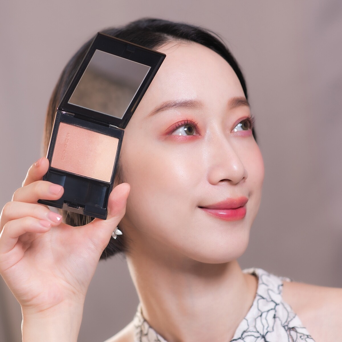 最特別的用法則是可以和原有的腮紅「疊擦」。只要先在顴骨處擦上#05土色小花當成打底色,接著在笑肌的位置刷上任何顏色的腮紅,都能讓臉蛋看起來更立體!