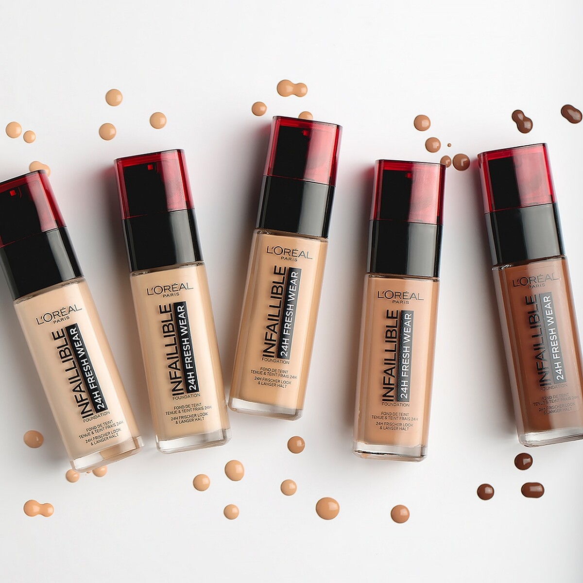 原有「24H無瑕誘潤粉底液」再升級,靈感來自「運動衣科技」,讓粉底液宛如一件貼身運動衣能親膚不脫妝,同時防水、防汗。加上全新的微細球狀因子,讓粉底液的質地更加輕盈,上完妝也感覺很透氣 。