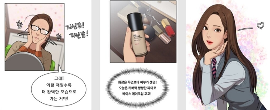 ↑連近期火紅的韓國漫畫《女神降臨》中也提到用此款粉底液進行無瑕變身。