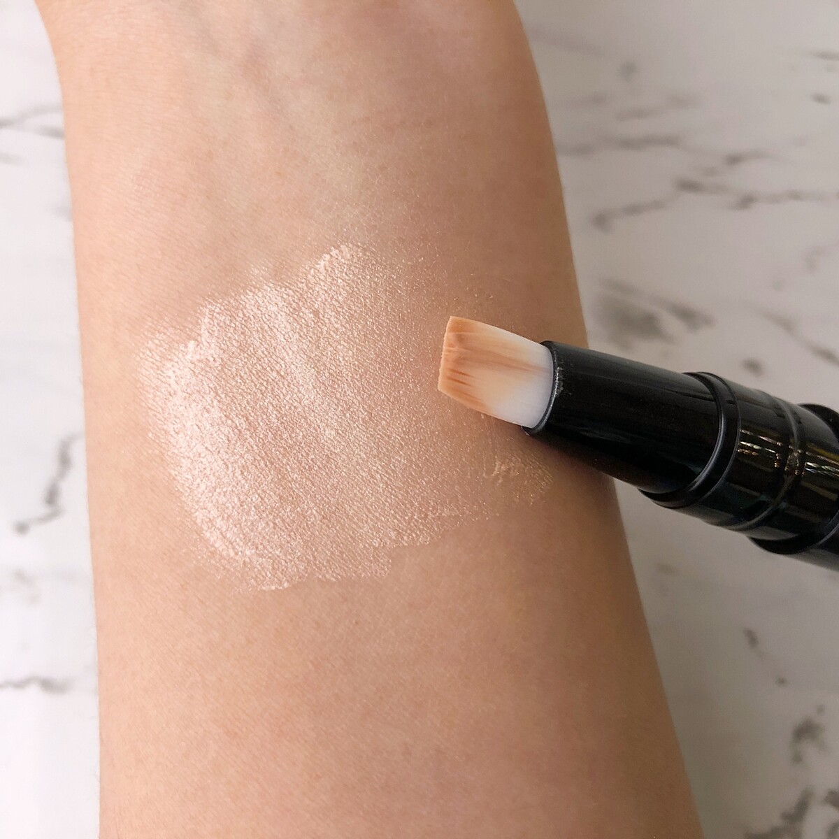 點評:比較少見的矽膠刷頭,直接點在遮瑕處很方便,質地較濃稠一點,用來遮斑點或痘痘較適合