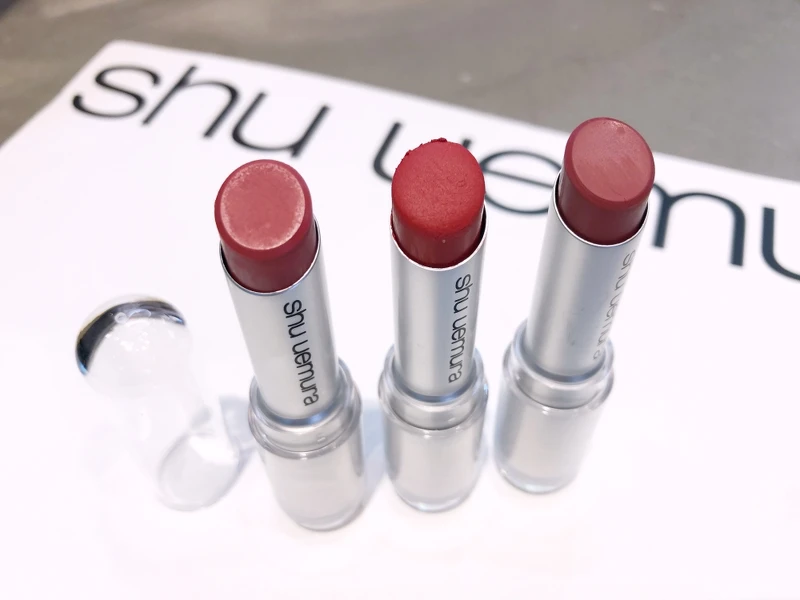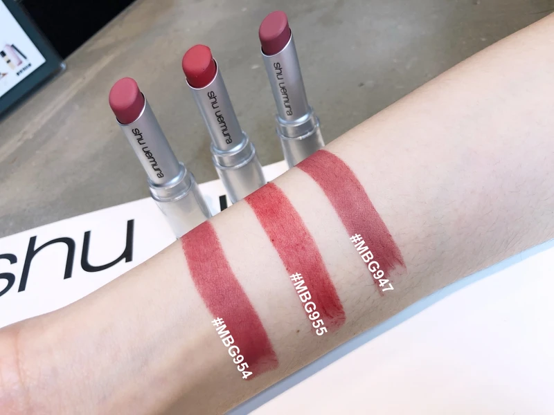 植村秀調和玫瑰奶茶色與土色系,打造無色限粉霧保濕唇膏的3款全新色彩:#MBG954榛果玫瑰土、#MBG955英倫玫瑰土、#MBG947暖陽玫瑰土。調過後的色彩避免了土色唇膏最常見的病氣感,以及玫瑰色唇膏易有的過度艷麗,變得更百搭、顯氣色。