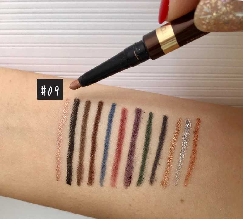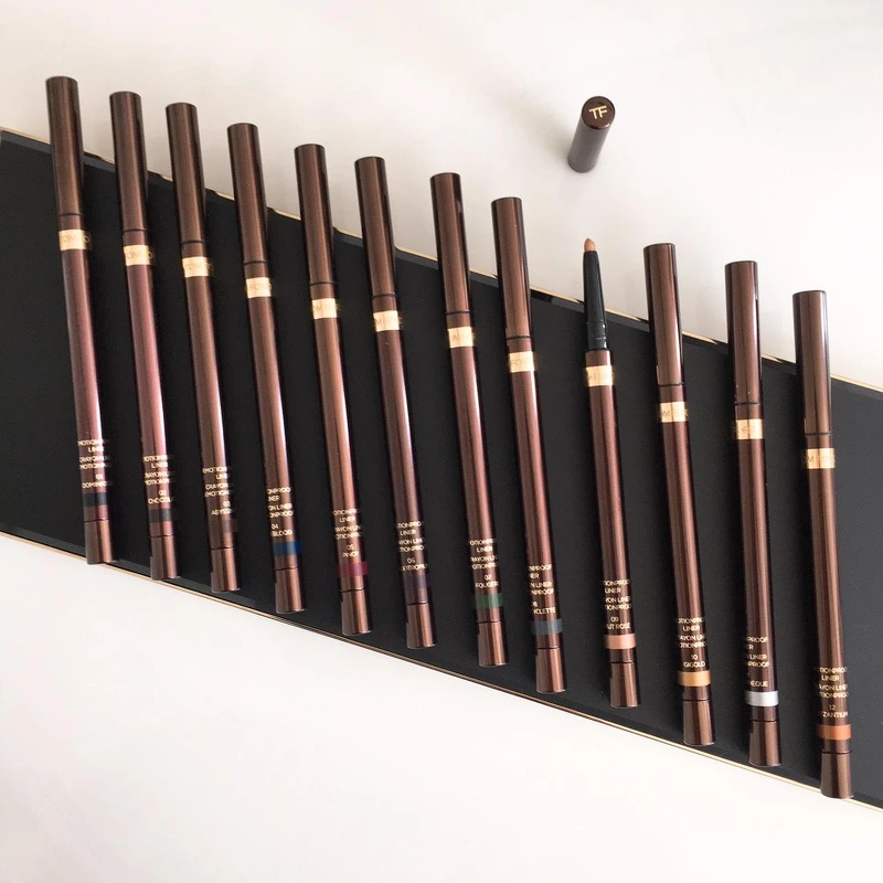 TOM FORD顛覆一般防水眼妝的色彩選擇,這次一口氣推出12款色選,從基本的深色調到超閃耀的亮片色彩,能夠針對今日的造型與場合做搭配,讓它成為今年夏天最時尚的眼妝配件。這次主打色除了基本款的「#01 DOMINATEUR」與「#08 MOTOCYCLETTE」外,玫瑰香檳金的「#09 BRUT ROSÉ」能打造現在潮流夕陽妝,能當眼線使用,或是眼頭打亮都深受許多年輕消費者喜愛。