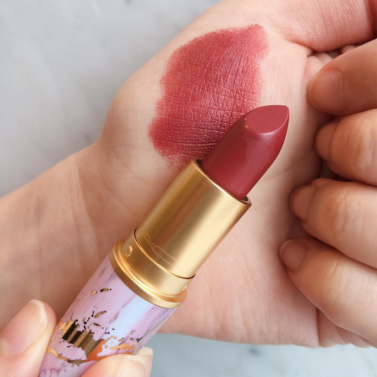 M‧A‧C經典子彈唇膏及晶亮魔唇換上一身粉嫩大理石包裝,蜜桃紅棕等趨勢色選,搭配多種質地變化,都能完美襯托夏日美唇,引人想入非非!