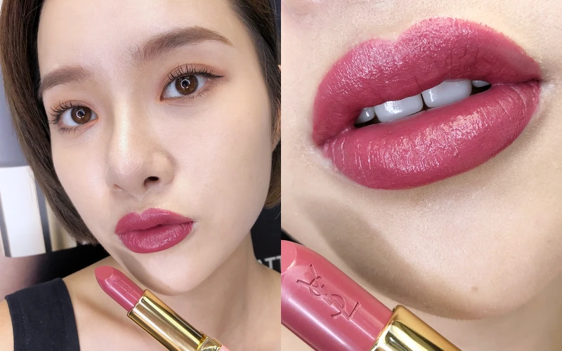 粉紅色外殼的奢華緞面唇膏#9擦起來是百搭的乾燥玫瑰色,特別顯白,原本在金管中就是超受歡迎的人氣色號。