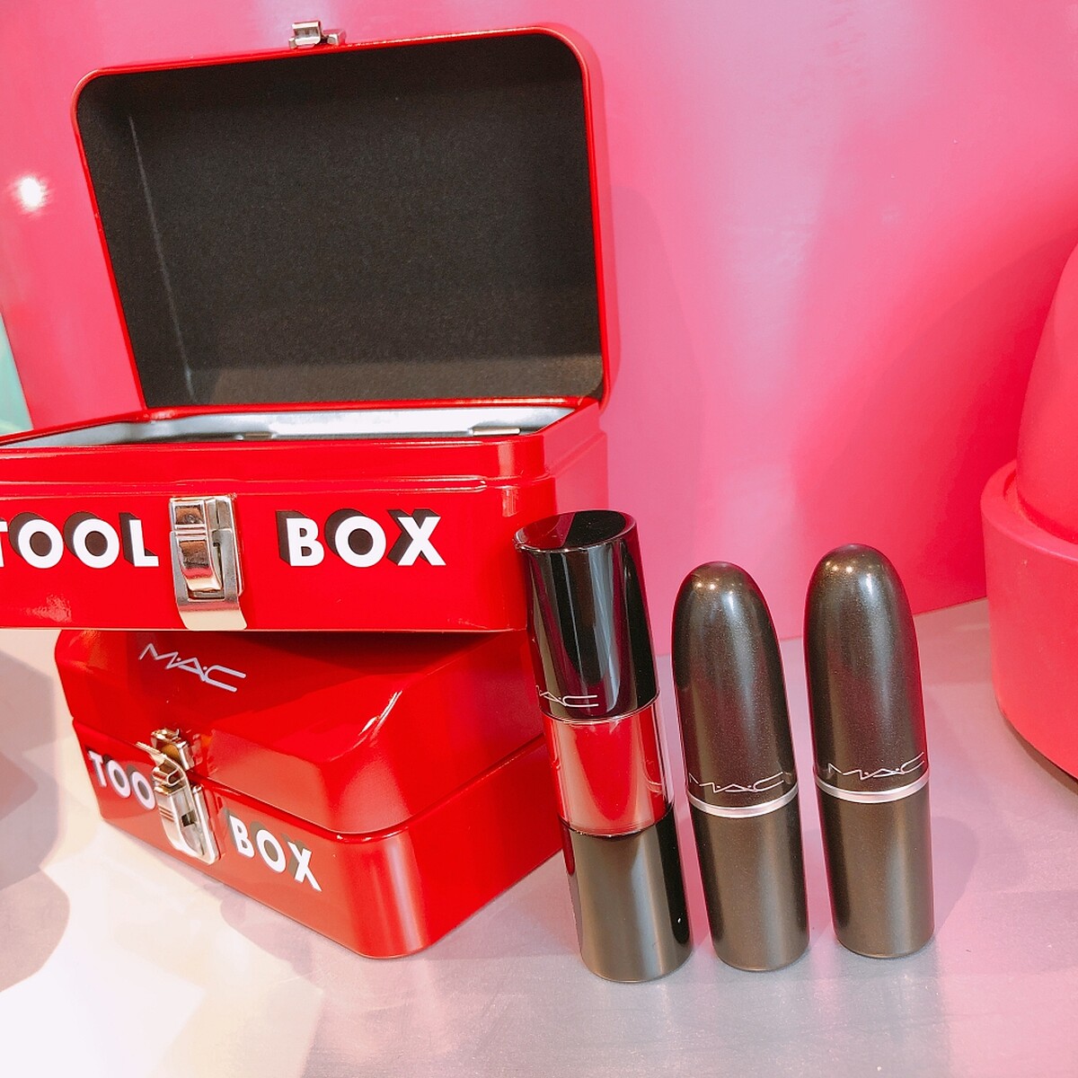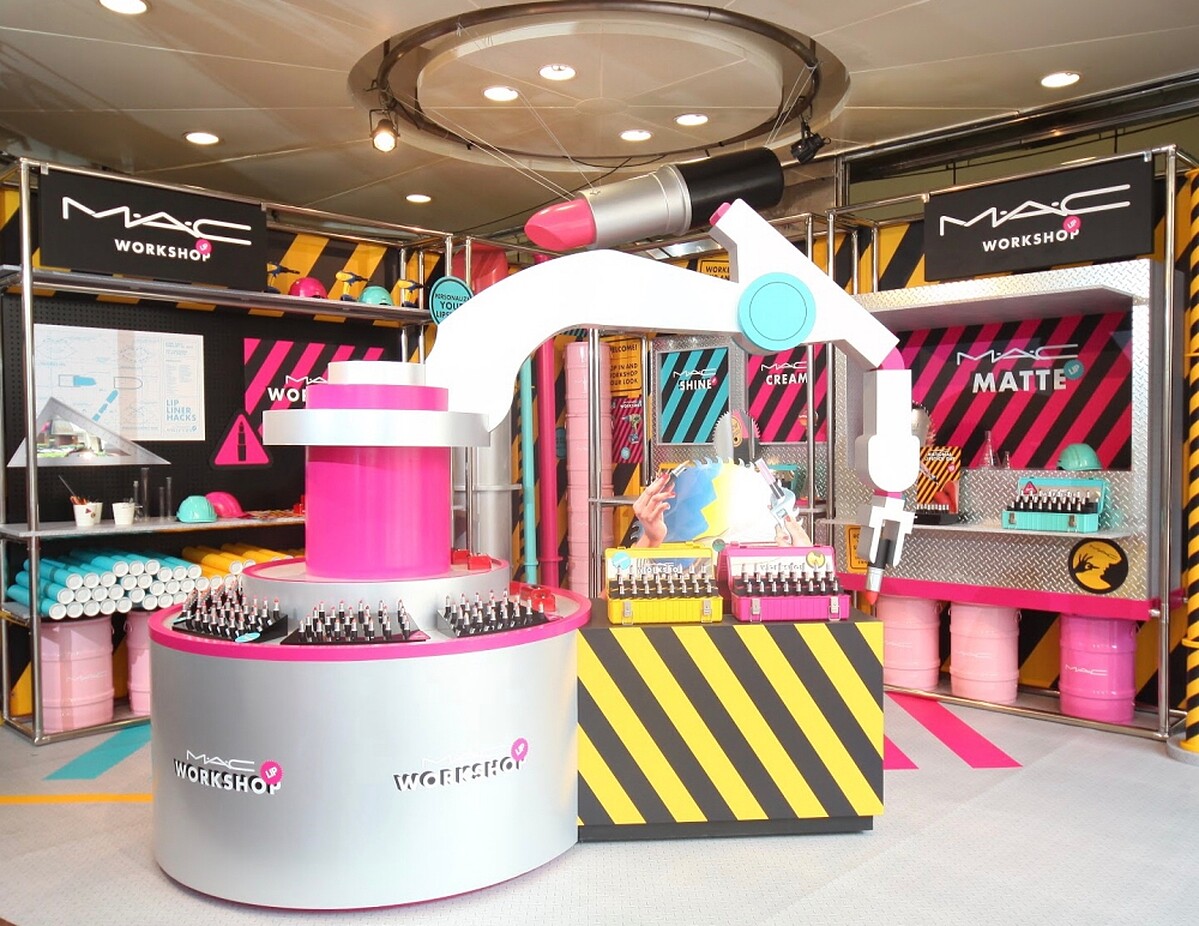 子彈狂潮工廠主打鮮豔跳色的工業風場佈,隨手都好拍,重點是超過200種唇膏、8種不同質地選擇的子彈口紅都可以現場自由試色。現場還引進了客製化3D唇膏列印機,可以打造專屬於自己的子彈唇膏。