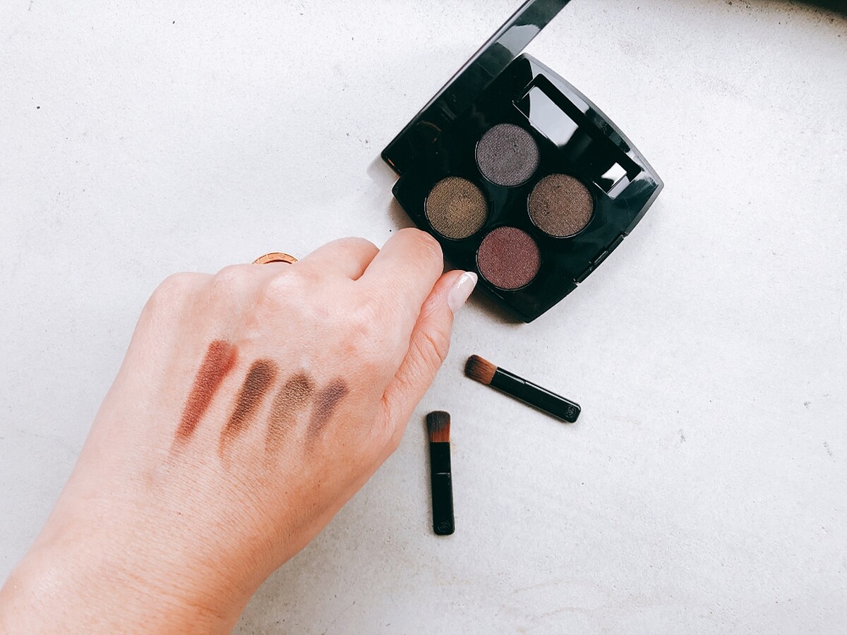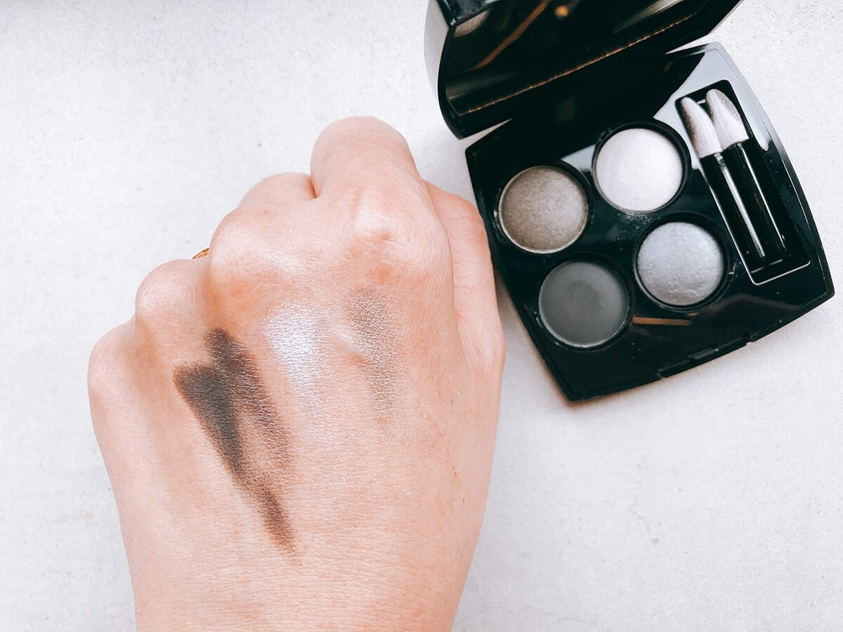 香奈兒四色眼影#332浪漫,以一系列層次豐富的棕色調,演繹早期黑白攝影的獨特質感,打造如天鵝絨般溫暖柔魅的妝效。#334時尚,呈現銀版攝影般更為閃耀、對比強烈的色彩。冷峻白與緞光灰在深沉的霧面黑映襯下,顯得格外分明。