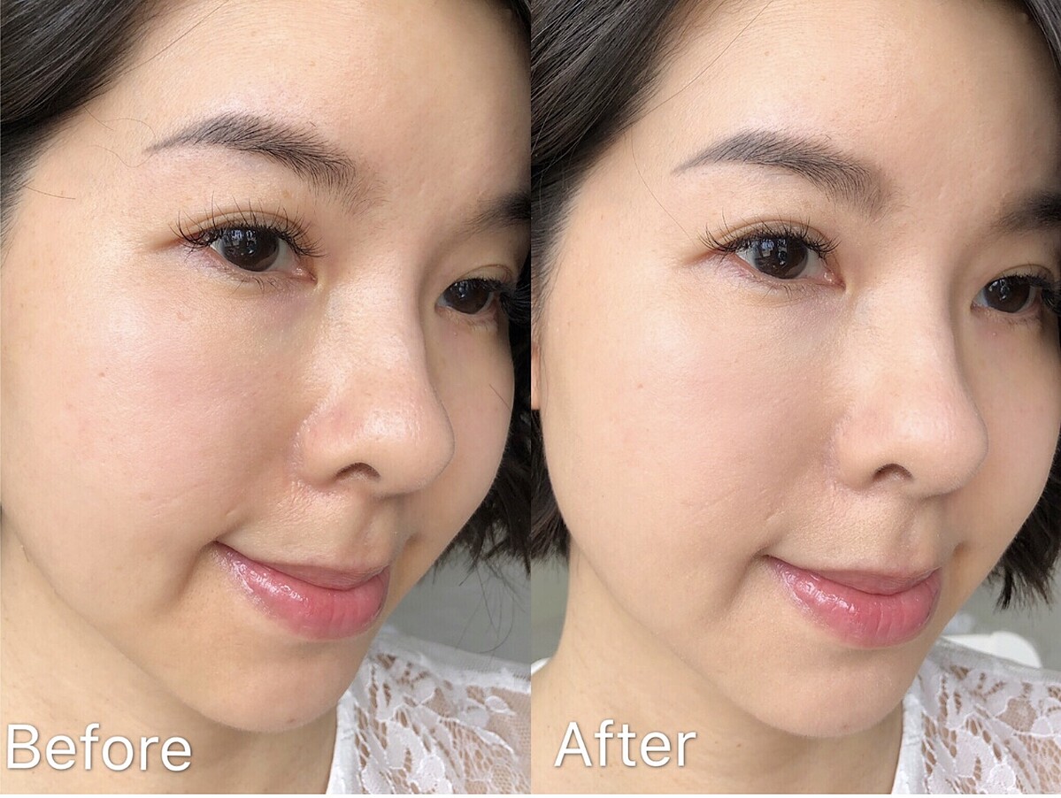 完妝後下巴處的膚色不均、黑眼圈修飾都有不錯的遮瑕效果,而且重點是整體妝感非常自然!一點也不顯得厚重。