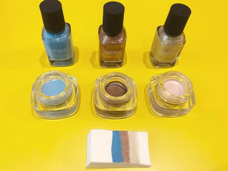 同時DOLCE & GABBANA還推出了三款單色眼影「完美單色眼影霜」和對應色的指甲油,使用兩種不同色號的珠光眼影霜,打造夏日眼妝。先以#50 Bronze均匀打底,再將 #20 Gold Dust輕點眼窩中心與眼頭,雙眼立體效果倍增。