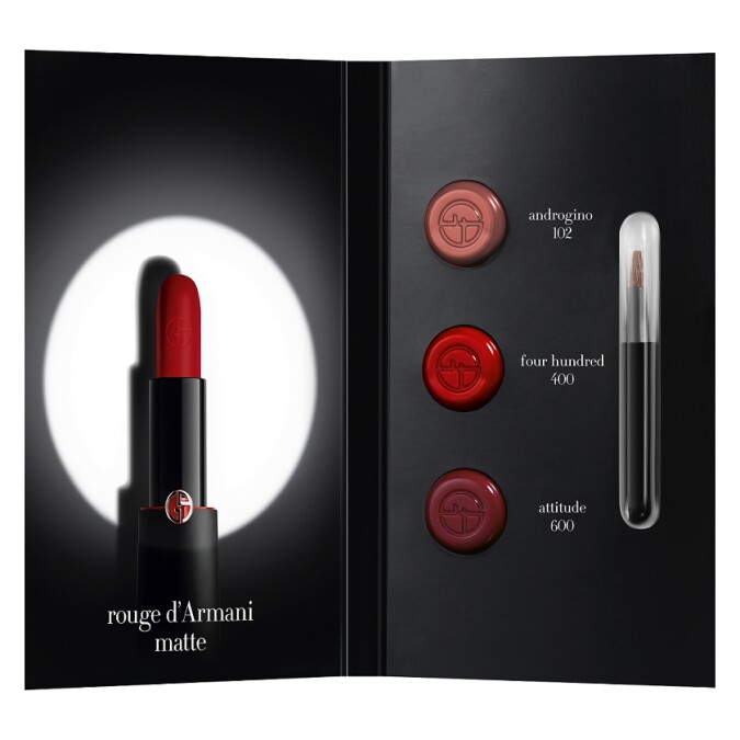 8/1起,全台Giorgio Armani專櫃及亞曼尼精品美妝官方線上旗艦館正式開賣「亞曼尼真愛限定禮盒」,其中內含奢華絲絨訂製唇萃#400真愛限定版一支及以下底妝任一瓶:完美絲絨水慕斯粉底、完美絲絨水慕斯粉餅霜、絲光精華氣墊粉餅粉底(全台限量500組,售完為止)。