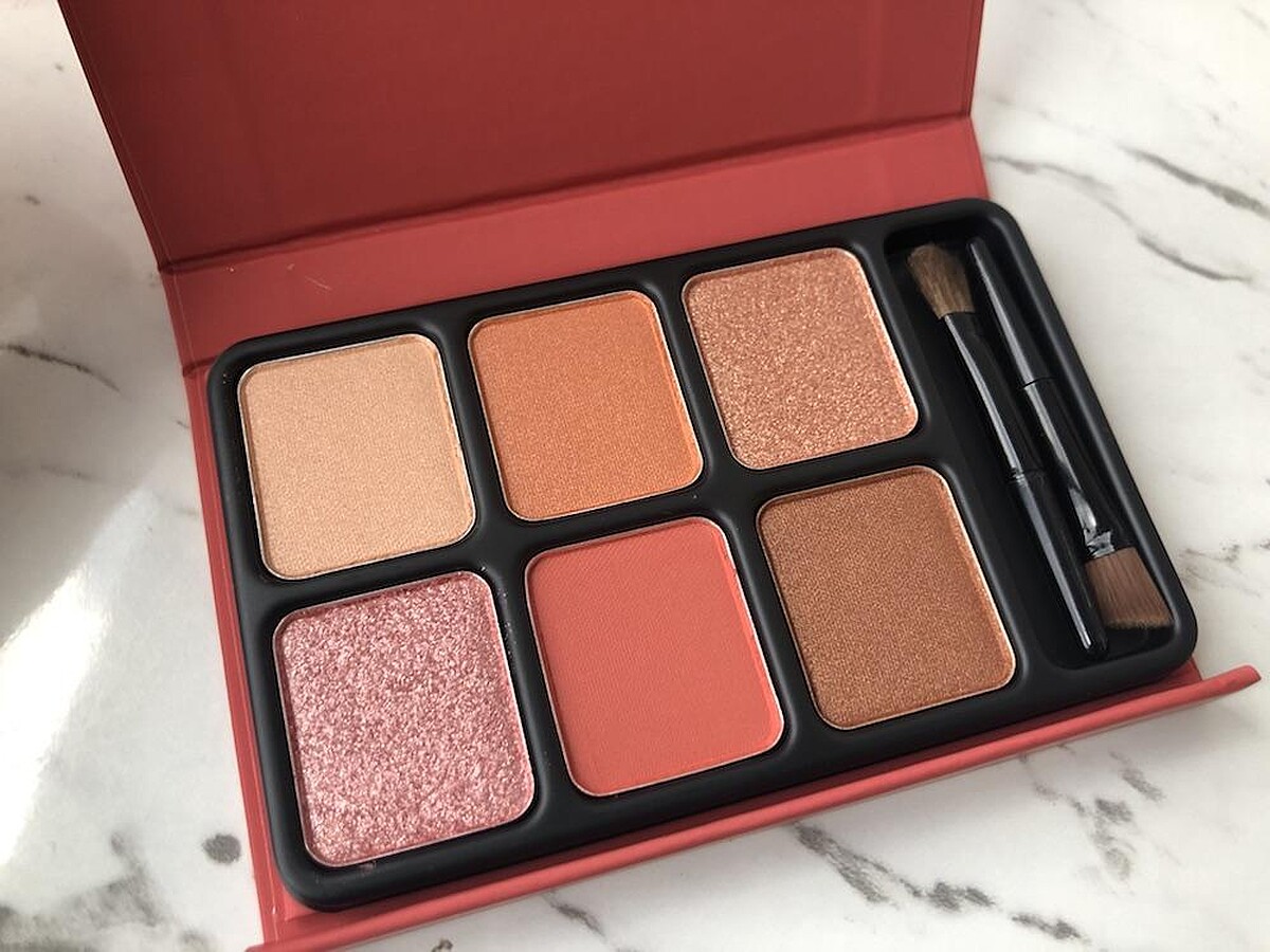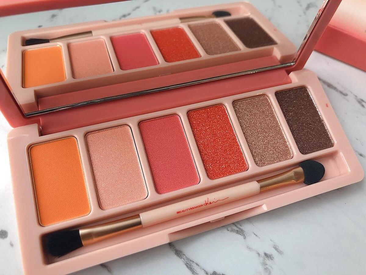 搭配3種粉質(珍珠光、琉璃光、柔霧光)加保濕成份,也是今年的大勢珊瑚橘色調,而且它不只是眼影盤,還能單獨當眼線、打亮、腮紅使用,一盤多用途。