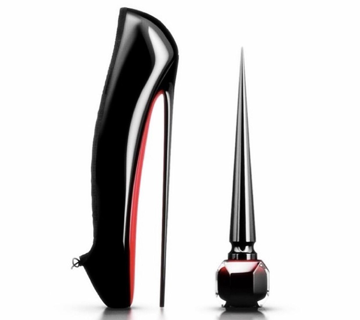 Christian Louboutin最早推出的彩妝品,先推出鞋跟造型指甲油,以性感恨天高的鞋跟做為指甲油刷柄,氣勢驚人!而指甲油的瓶身是多面、漸層而輕巧的玻璃容器。為了向品牌系列中最高的高跟鞋Ballerina Ultima致敬,特別設計長達8吋的纖細瓶刷,作為品牌概念性精神象徵。為了符合市場需求,現在販售的產品高度已下修,方便收納攜帶。