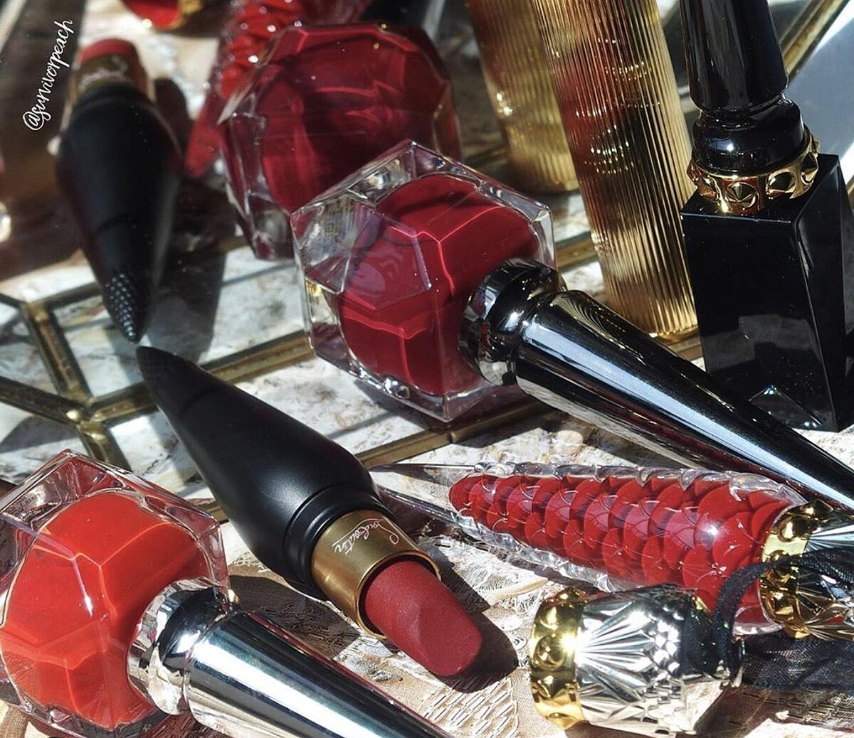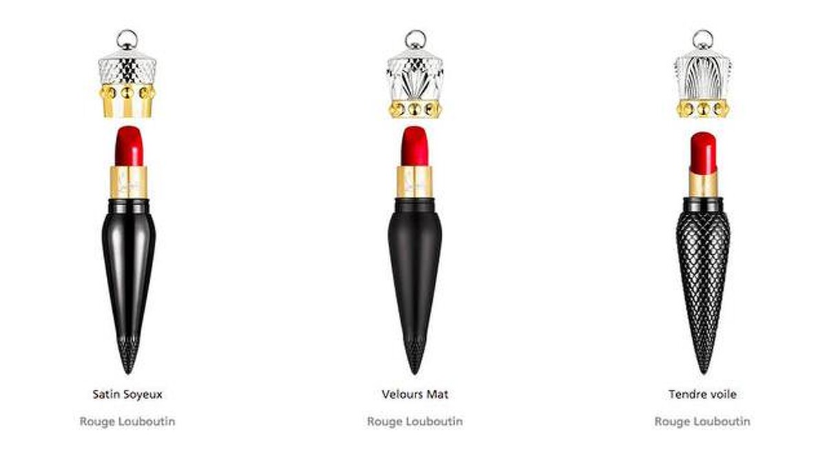 Christian Louboutin的唇膏,取其Louboutin的諧音,又被網友戲稱為「蘿蔔丁口紅」,共有絲絨啞光Velvet Matte、柔滑緞光Silky Satin、輕透薄紗Sheer Voile等三大系列,各自呈現霧面、緞光、亮面等質地。口紅造型和指甲油一樣參照了紅底鞋鞋跟的設計,以尖錐外形,加上挑逗的紅黑搭配,以埃及古文物及裝飾藝術浪潮為靈感,如女性軀體般婀娜的瓶身曲線,點綴皇冠般的旋蓋,繫上一條絲綢緞帶,讓唇膏搖身一變成精品頸鍊。
