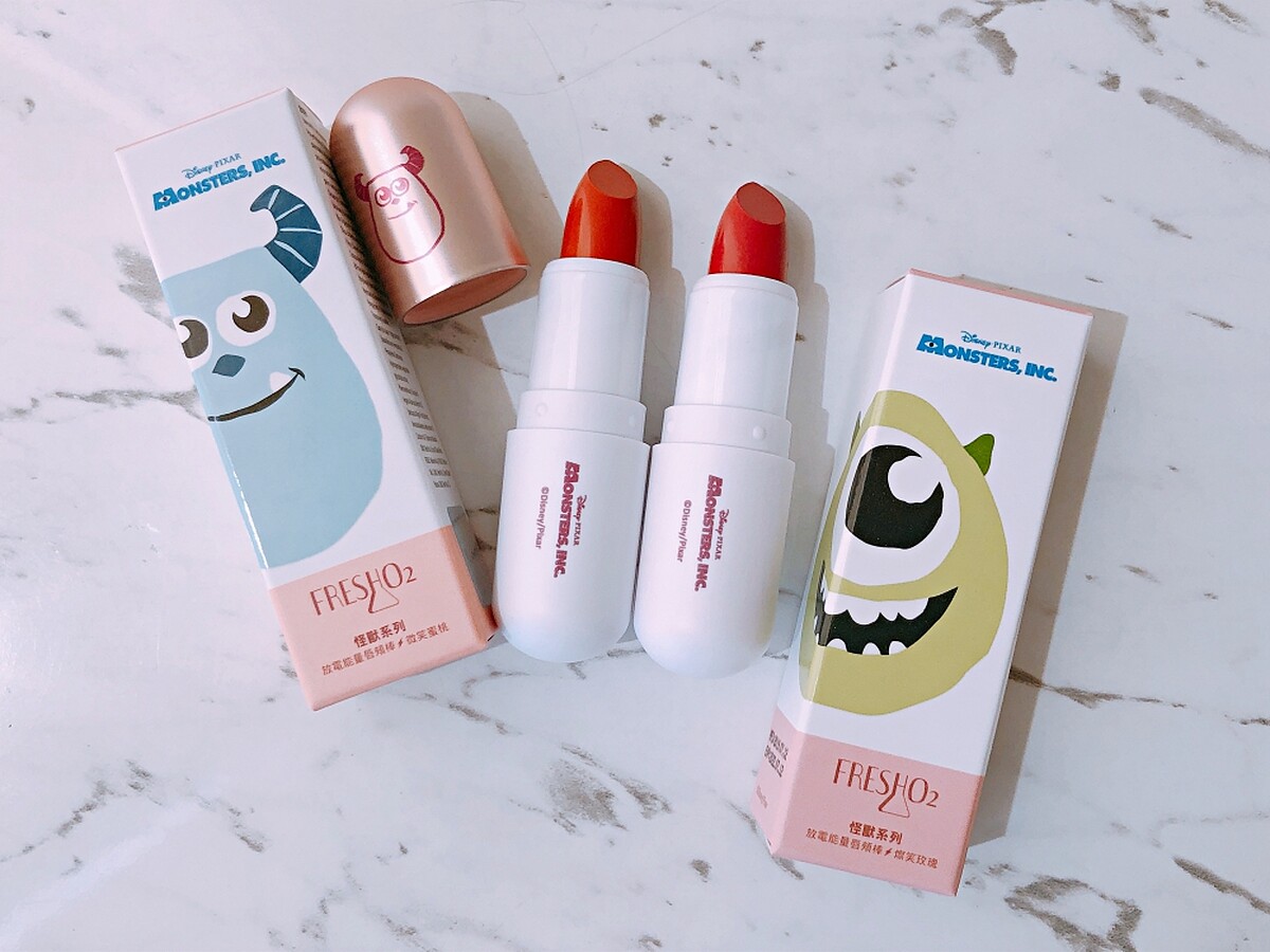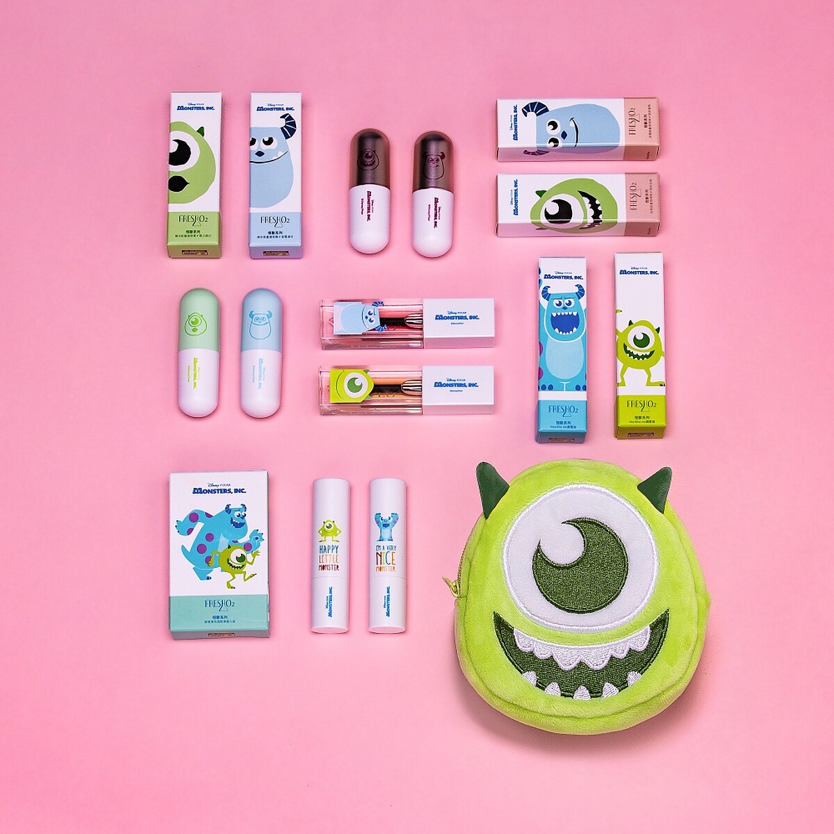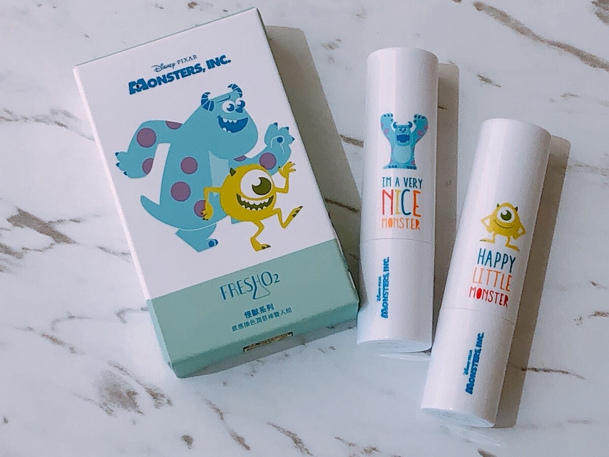 當然喜歡的話也能一次帶走Disney Monsters collection by FreshO2全系列組,裡頭包含:怪獸系列感應換色潤唇棒雙入組、怪獸系列補水能量護唇膏(#發電滿分、#電力滿分)、怪獸系列放電能量唇頰棒(#微笑蜜桃、#燦笑玫瑰)、怪獸系列Hey! Kiss me潤唇油、怪獸系列Hey! Chu me潤唇油、大眼仔造型收納化妝包。
