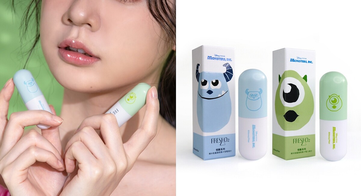 FreshO2最熱銷的「感應換色潤唇棒」以分子釘、蜂蠟、羊毛脂、葵花油、山茶花及油菜籽等多種植萃滋潤成分,加上pH值感應換色科技,一直擁有高人氣,這次推出「感應換色潤唇棒雙入組」內含莓果與玫瑰雙種口味,加上有毛怪與大眼仔的超可愛外型,絕對會擄獲女人心!