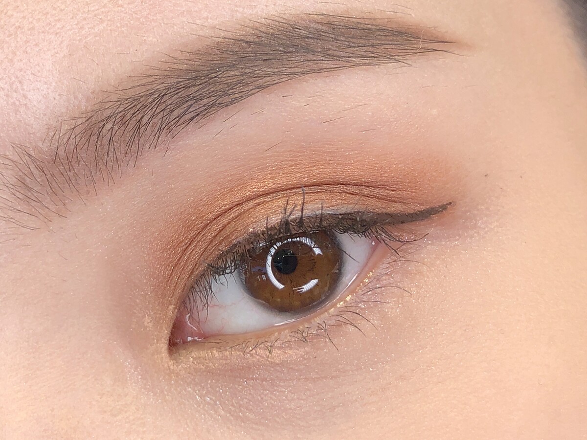 ↑#41鐵鏽玫瑰擦起來的橘棕色十分溫柔,搭配在下眼瞼的則是#11白桃奶茶,淡淡的提亮感非常吸睛。
