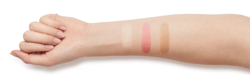 一盤就有打亮、腮紅、修容,極美配色加上實用用途已經席捲歐美IG與Pinterest。可沾取少量於眉骨、鼻樑、鼻頭與顴骨進行重點打亮,也能再疊擦腮紅增加氣色,最後以深色修容修飾立體輪廓。