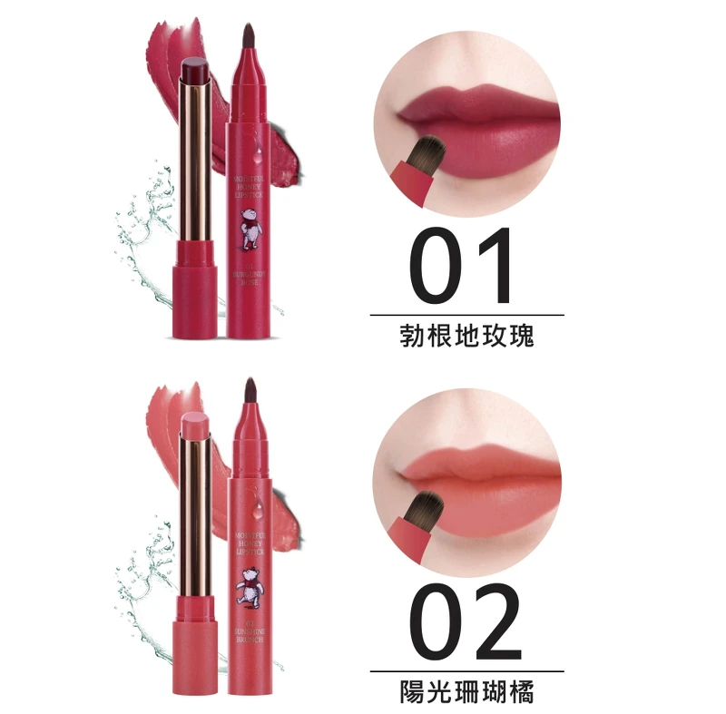 棒狀設計使用順手,輕輕塗抹於雙頰就能帶出自然的霧面絲絨妝感,裡頭當然也添加了蜂蜜,因此用起來滑順不乾澀。一共推出2色:#01 杏桃紅、#03蜜桃粉