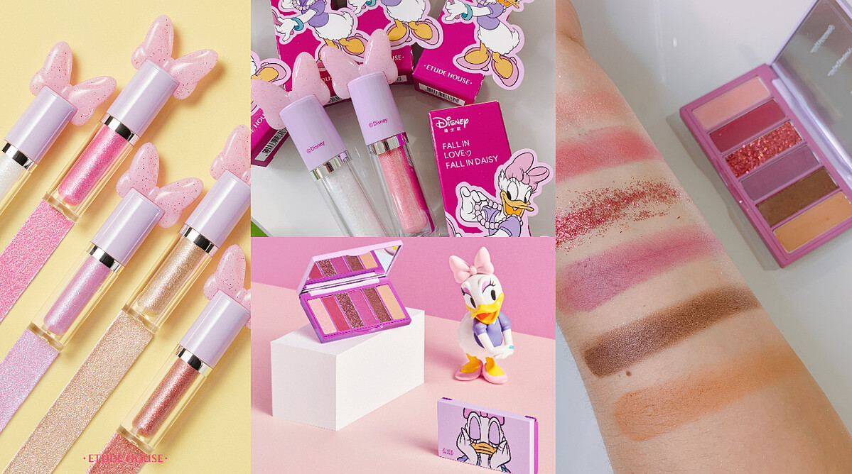 2019下半年最可愛聯名就是《Etude House》!請來Pony大神化身迪士尼黛絲,並首度和迪士尼黛絲(Daisy Duck)合作推出限定包裝彩妝品。本次聯名不僅推出許多新品,也全部換上可愛限量包裝,擷取Daisy的形象,可以在腮紅、眼彩盤、睫毛膏,甚至刷具、髮帶看到俏皮的紫色與粉色,於《Etude House》全台門市9/13嶄新登場!