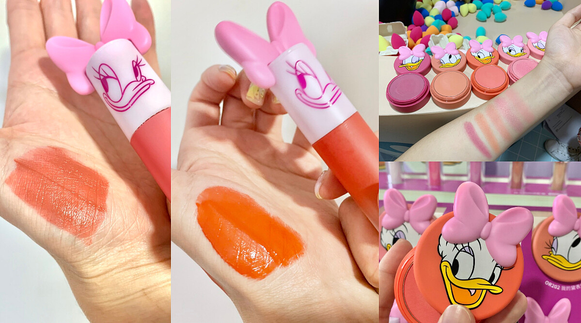 在這次的聯名產品中,《Etude House》首度堆6色黛絲出眼影蜜,還有兩款眼彩盤,眼影蜜非常好上手,根本是手殘女孩的救星!只要沾取眼影蜜在眼皮上,輕輕地推開,就可以有渲染的效果,也可以使用不同顏色堆疊來打造漸層眼妝。兩款6色彩眼彩盤分別是帶橘調的#唐老鴨的黛絲,和粉嫩色#夢想中的黛絲,質地上有珠光亮片打造最活潑可愛眼妝。