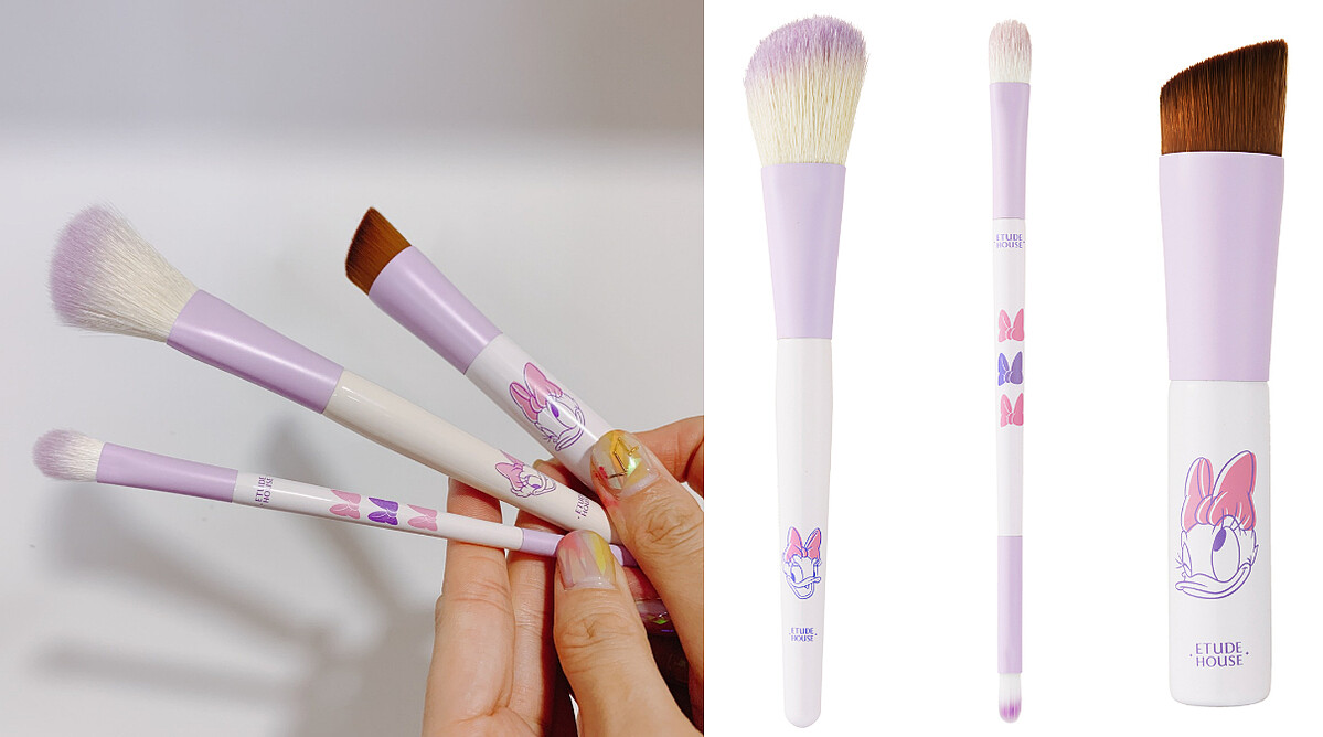 《Etude House》 X 迪士尼聯名品項超級齊全,就連刷具到髮帶都幫你準備好了!粉嫩淡紫色的漸層頰彩刷超級夢幻,眼影刷、萬用刷上都有可愛的黛絲,對女孩來說,髮帶更是日常生活不可或缺的小法寶,帶著可愛蝴蝶結髮帶,一秒化身俏皮黛絲,一邊化妝也不怕頭髮沾到。
