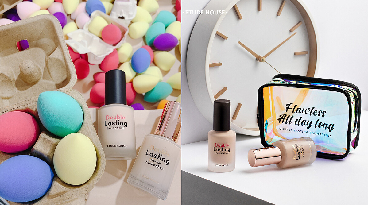 韓妞最愛底妝下半年的底妝趨勢,還是比較偏霧面,但是霧面當中帶著一點光澤,《Etude House》的長效超持妝粉底推出升級版,粉底的防曬係數從原先SPF34升級到SPF42,為慶祝粉底升級,也特別從韓國進口高人氣話題商品Puff Factory 的彩色寶貝蛋,只要在9/1-9/15活動期間,購買長效待肌粉底系列,即可獲得彩色寶貝蛋精裝組(兩入),購買兩件(可含刷具)送彩色寶貝蛋組(四入),只送不賣,數量有限送完為止,購買長效待肌限定組合再送獨家化妝包。