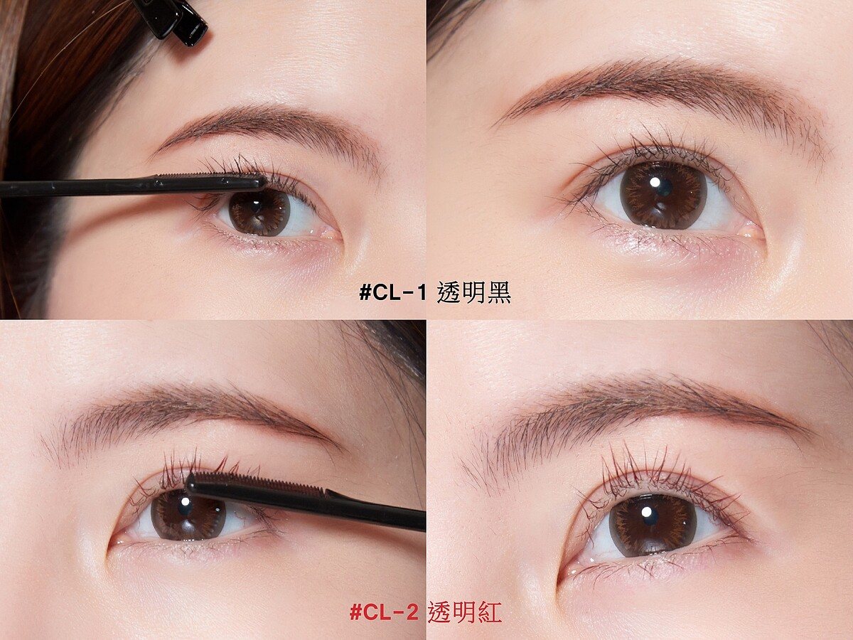 推出兩色,獨特的 #CL-1透明黑& #CL-2透明紅色澤,搭配順手的梳子型刷頭,輕鬆刷出綻放淡淡黑/紅透明光澤,很適合想要低調、卻又希望睫毛捲翹的自然粧感時使用,這個小心機必學。