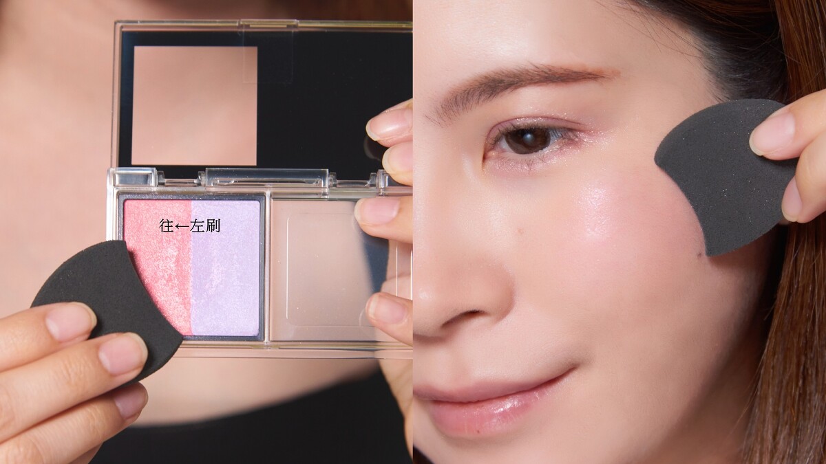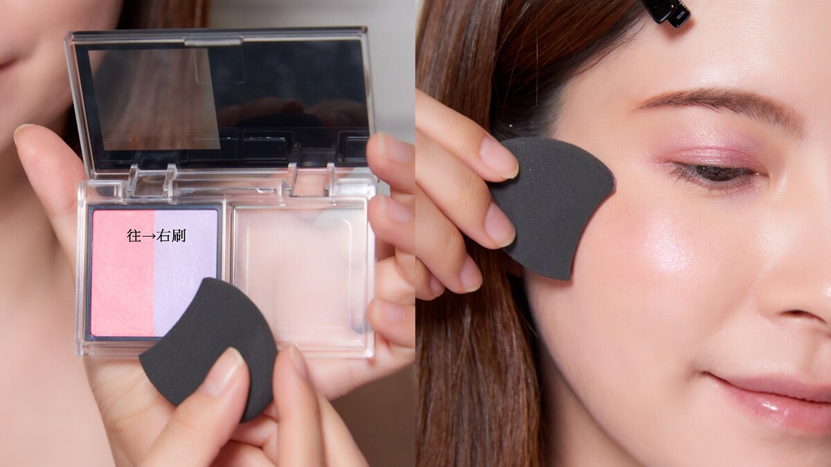 往左抹,則能提升雙頰自然紅潤感。可依自己喜好&粧感來做變化。