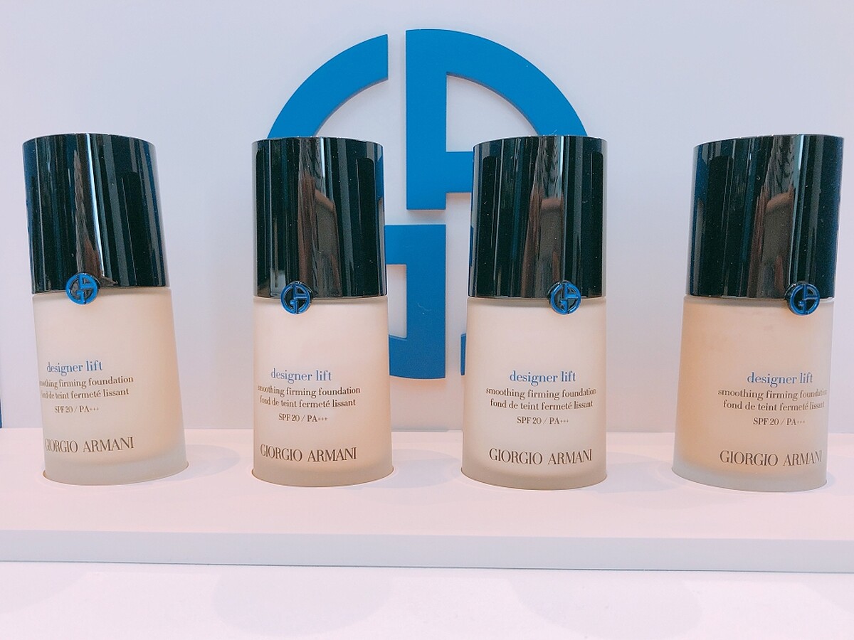 GIORGIO ARMANI每次推出新粉底都會引起轟動,今年9月推出「設計師水感光影粉底」,瓶身上的LOGO變成藍色,原因就是因為在粉體中加入Armani先生最愛的「普魯士藍光」,因此可以校正暗沉蠟黃膚色,一擦讓肌膚超顯白。