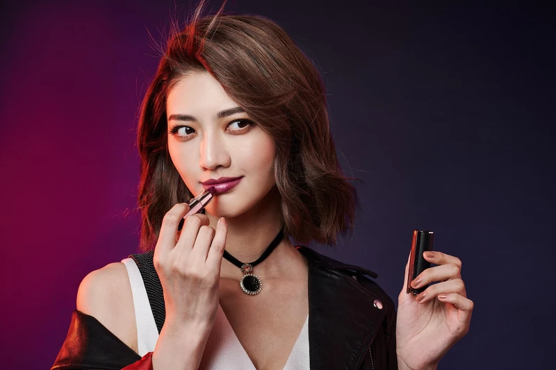 換上另一套隨性褲裝時,她則選用了今年秋冬最想嘗試的偏紫色號 #218紫羅蘭香吻誘惑唇膏,她認為這樣的紫色不會過於誇張,融合大膽個性與優雅的平衡需求,而且有透透如果凍的質地,一如她的個性,酷帥中帶點淘氣。
