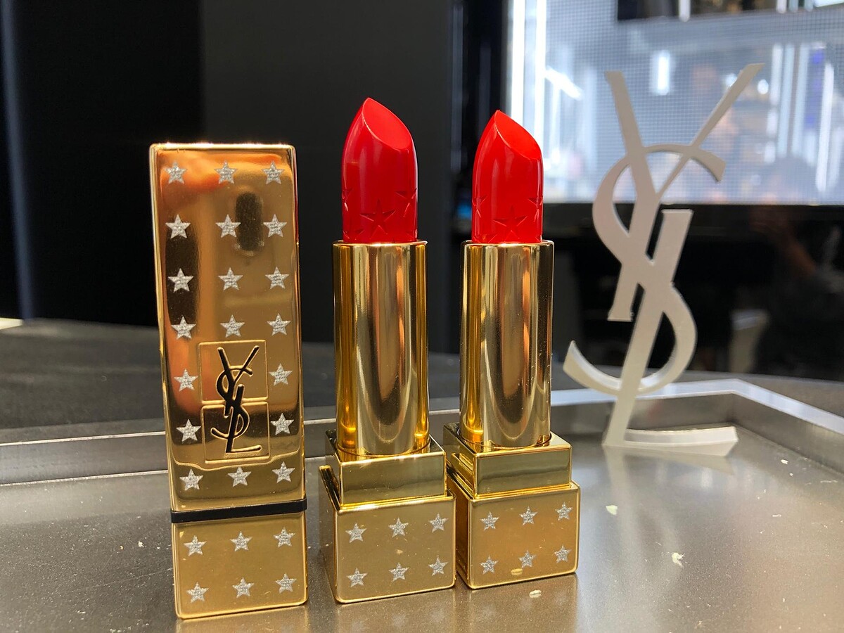 YSL 針對熱賣商品推出週年慶限定外盒包裝,以「繁星降落、浪漫星願」的概念,將「奢華緞面唇膏#01、#13」外管和膏體上點綴了一顆顆閃閃發光的星星,並限定櫃點限量販售。