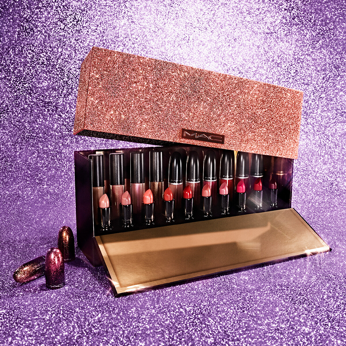 其中最讓粉絲瘋狂的就是「HOLIDAY 20色唇妝組」,一組包含了超鎮店子彈唇膏色號如經典小辣椒CHILI、土色唇膏始祖TAUPE、伯爵奶茶Velvet Teddy等等,更同步加入晶亮魔唇、超霧感唇釉以及超霧感唇釉派對必備金屬版,重點是原價上萬的組合,竟然打到3.2折甜甜價NT5,400無痛入手,購買還再送M·A·C妝前唇霜。