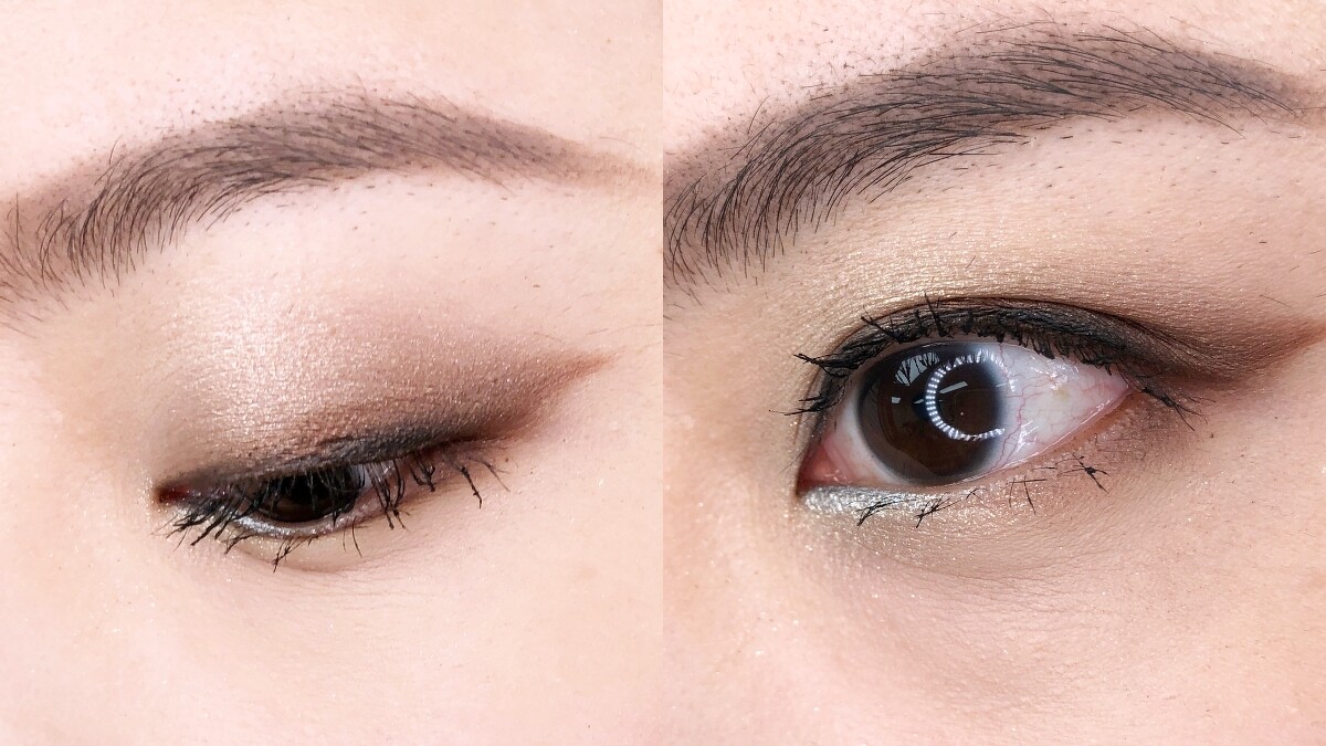 ↑眼影盤試色,黑色眼線就是用左下格與右下格畫出來的。