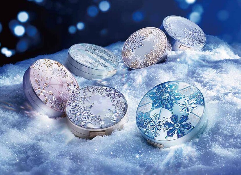 今年粉體以全新白雪冰晶粉末及鑽石鏡光粉末為主,能填補肌膚紋理,讓肌膚散發透明光。搭配七色立體珍珠光粉末光感,遮瑕並校正膚色。連製法上,都以以美容油酚均勻包覆每一顆粉末,使質地更均勻平滑,不怕卡粉。