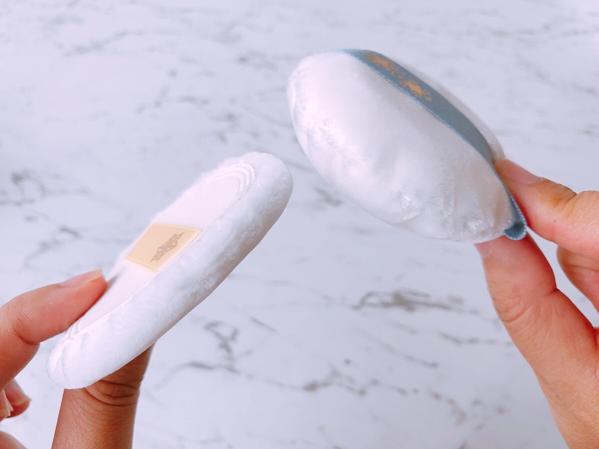 粉撲也附上兩塊,較薄的是日用的密著柔軟粉撲、較厚的是夜用的輕膚柔軟粉撲。