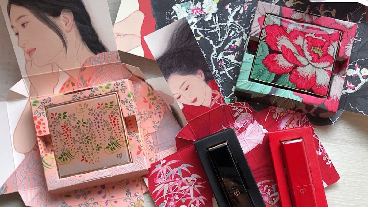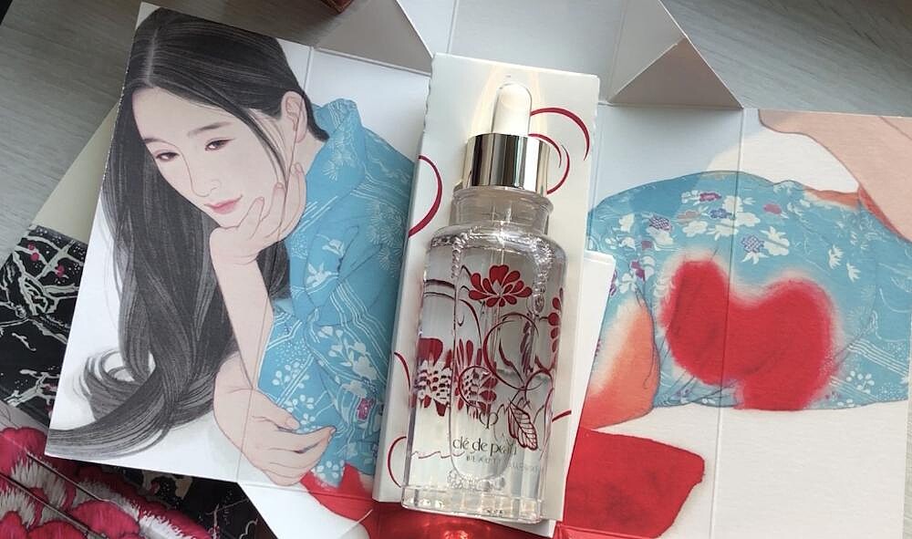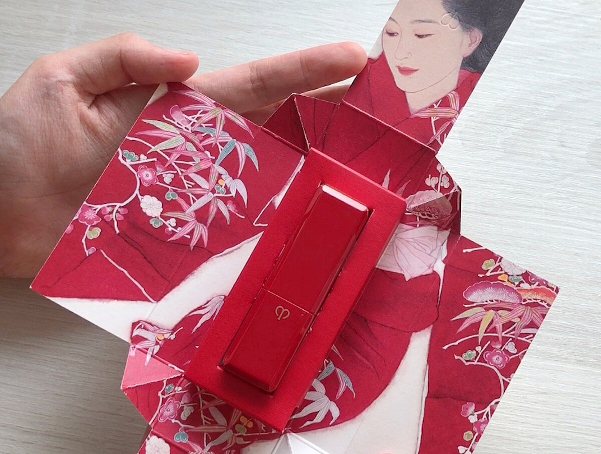 包裝是和服腰封,打開是一位穿著和服的藝妓,精緻的插畫特別邀請到日本當代新銳膠彩畫家大竹彩奈(Ayana Otake)合作,此系列的獨家設計,正是藉由日式傳統和服般層層展開的包裝,來展現女性的內在光采之美。