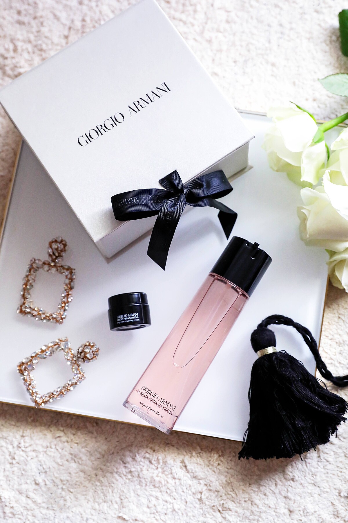 GIORGIO ARMANI特別規劃「人生初次奢華體驗」活動,2019年9月至12月週年慶與非週慶期間(預購會期間除外),單筆消費滿6,000元以上,其中包含被譽為肌膚專用粉紅香檳的「黑曜岩新生奇蹟精萃露」,即贈「黑霜小奢華精巧版」!(每人僅限一次)