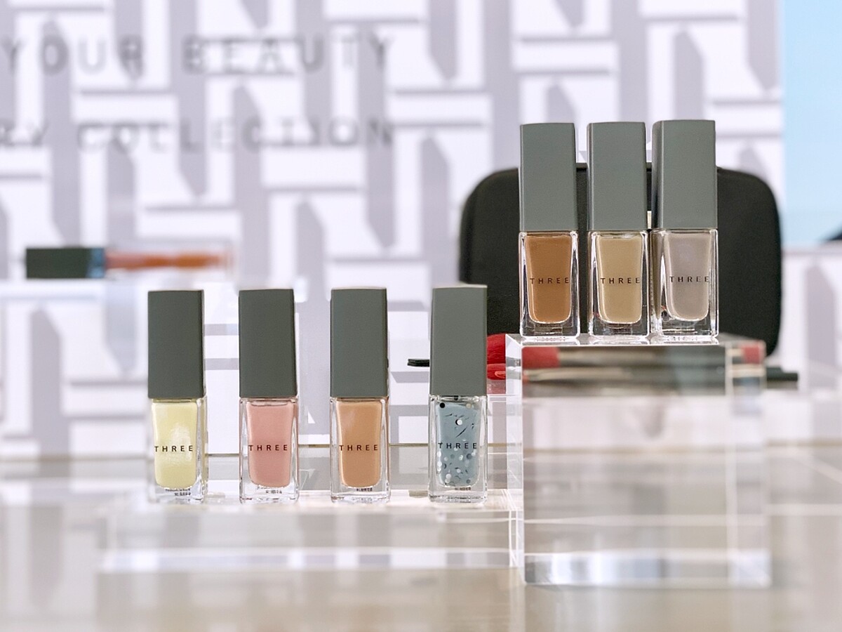 THREE一向擅長使用灰色調,慶祝10週年的7個指甲油新色當然也不例外,讓指尖更顯中性優雅。7色分別為:#97 ALOYSIUS奶霜黃、#98 CONSTANCE閃耀粉、#99 OCTAVIA帶有紅感的裸色調、#100 HANNELORE朦朧烏龍、#101 ELOISE摩登灰褐、#102 PRUDENCE牛奶巧克力、#103 TABITHA淺湖藍。