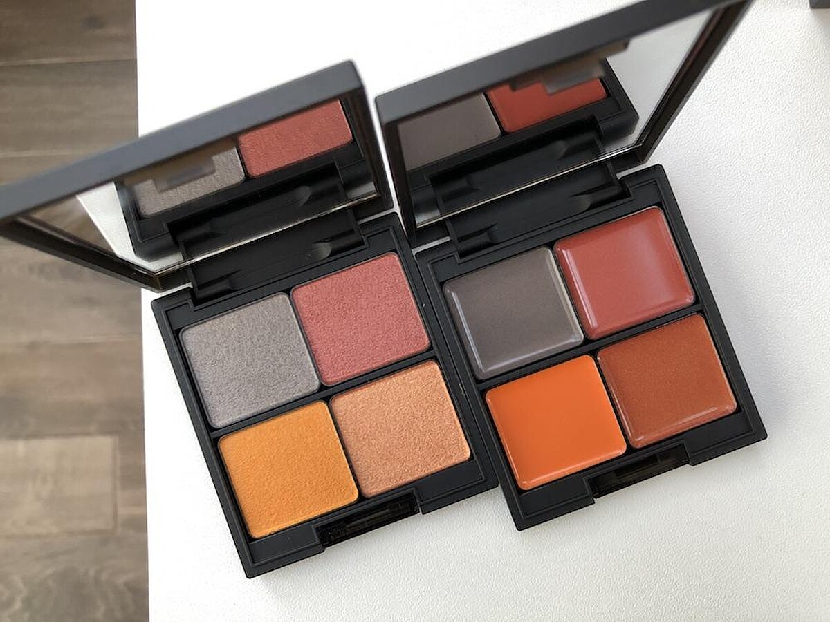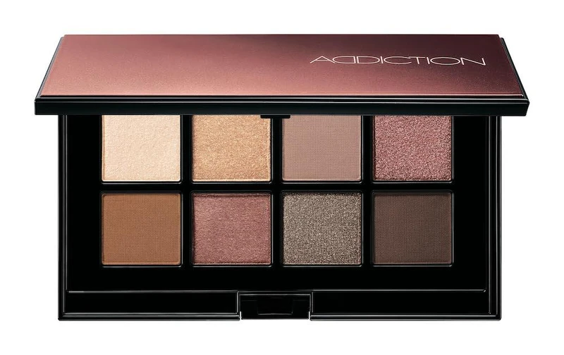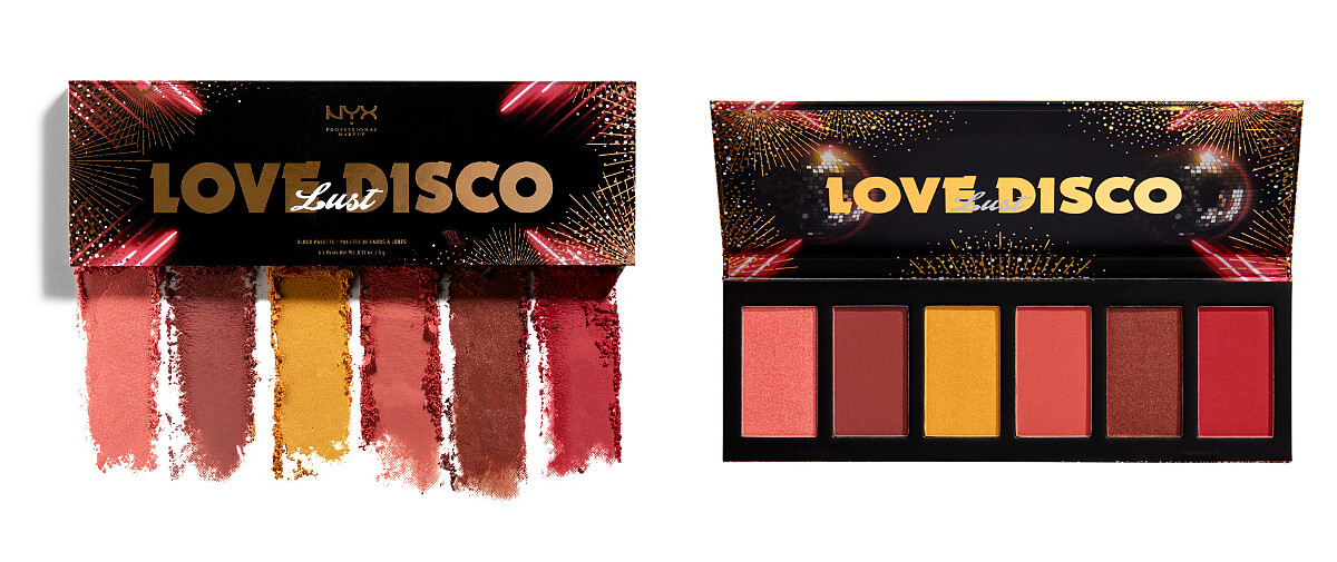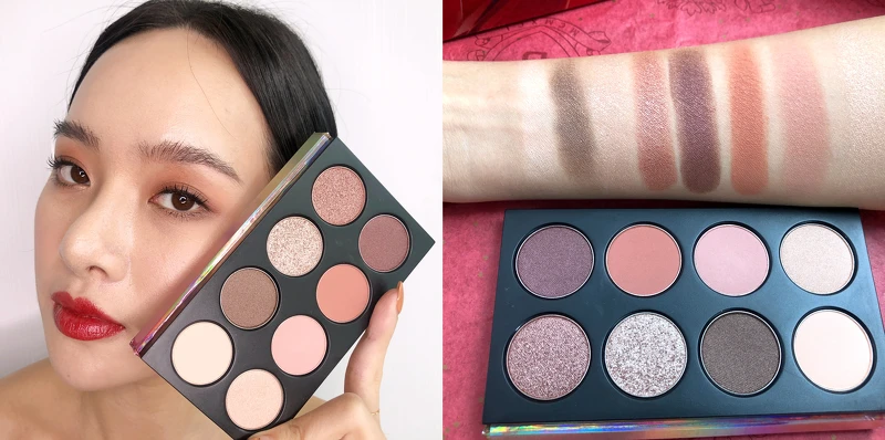 共有大地色系、磚紅色系兩盤時髦色選,每盤集結10種派對必備色,具備霧面、金屬光及亮片質地,粉質飽和又顯色,易於堆疊暈染,輕鬆玩出多款個性眼妝。