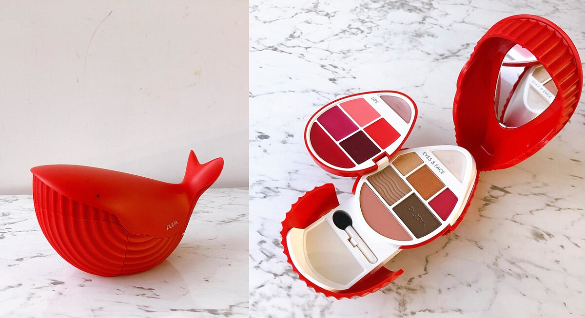 義大利PUPA彩妝每年聖誕節前夕都會推出全球人氣Q版動物彩妝盒,今年以海洋保育議題,打造可愛的小鯨魚造型「漂漂鯨」,如公仔般作為桌上裝飾超吸睛。更與國際知名「WDC鯨魚海豚保護協會」合作呼籲民眾一起加入 #Savethewhale 關注鯨豚保育議題。