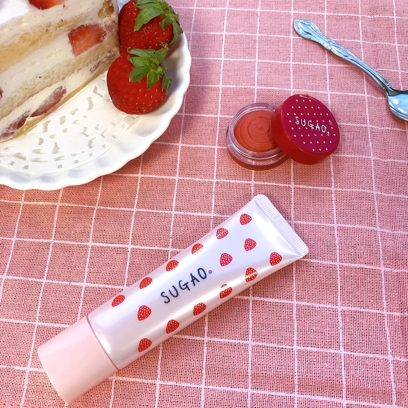 因應12月節慶,日本開架彩妝品牌SUGAO推出粉紅又夢幻的全新「SUGAO甜莓派對限定組」,人氣商品「粉透白素顏慕斯」換上可愛草莓點綴的限定版包裝,「天生粉嫩舒芙蕾腮紅」也推出了草莓果醬新色。