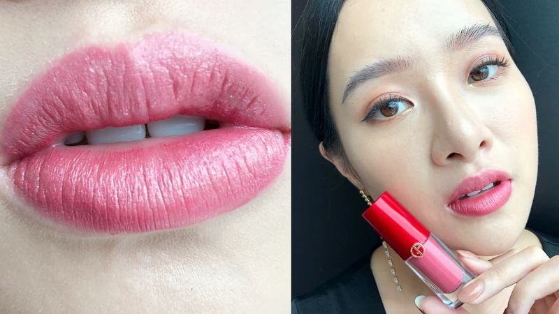 帶金粉的玫瑰色,讓雙唇嬌嫩動人。