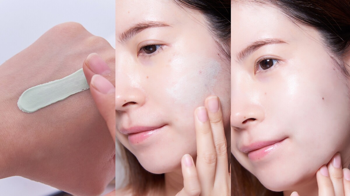 跟M編一樣易泛紅&有紅痘疤的女孩,建議選擇「明亮綠」來修飾泛紅,達到自然遮瑕的效果。
